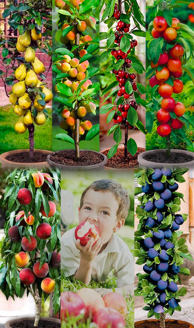 Aqui oferecemos nossas variedades de árvores frutíferas colunares, ideais para pequenos jardins com espaço limitado, para cultivo em vasos ou como parede verde separando o jardim ornamental da área frutífera. Cultive sua própria fruta orgânica, suculenta e doce!