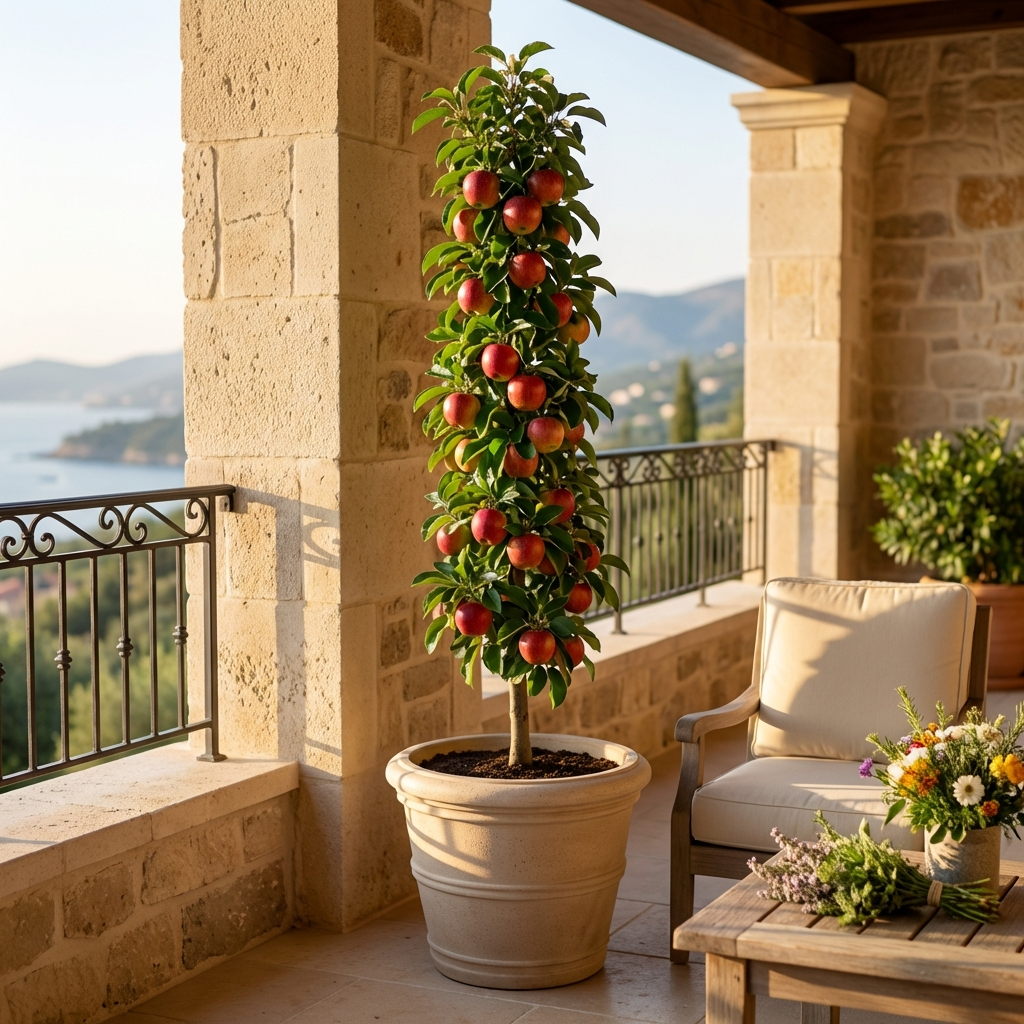 Árvores frutíferas colunares são ideais para valorizar pequenos espaços ao ar livre ou jardins relativamente compactos. Você também pode plantar essas árvores em terraços ou varandas. Ocupam pouco espaço e têm uma aparência elegante e refinada.